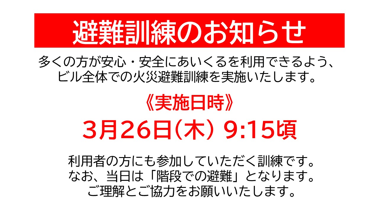 午前9時から午後9時まで ・小学生午後6時、中学生午後7時まで(※保護者同伴の場合を除く。) ・5階フロア(子どもプラザ・一時預かり室・児童体育室)は午後6時まで |